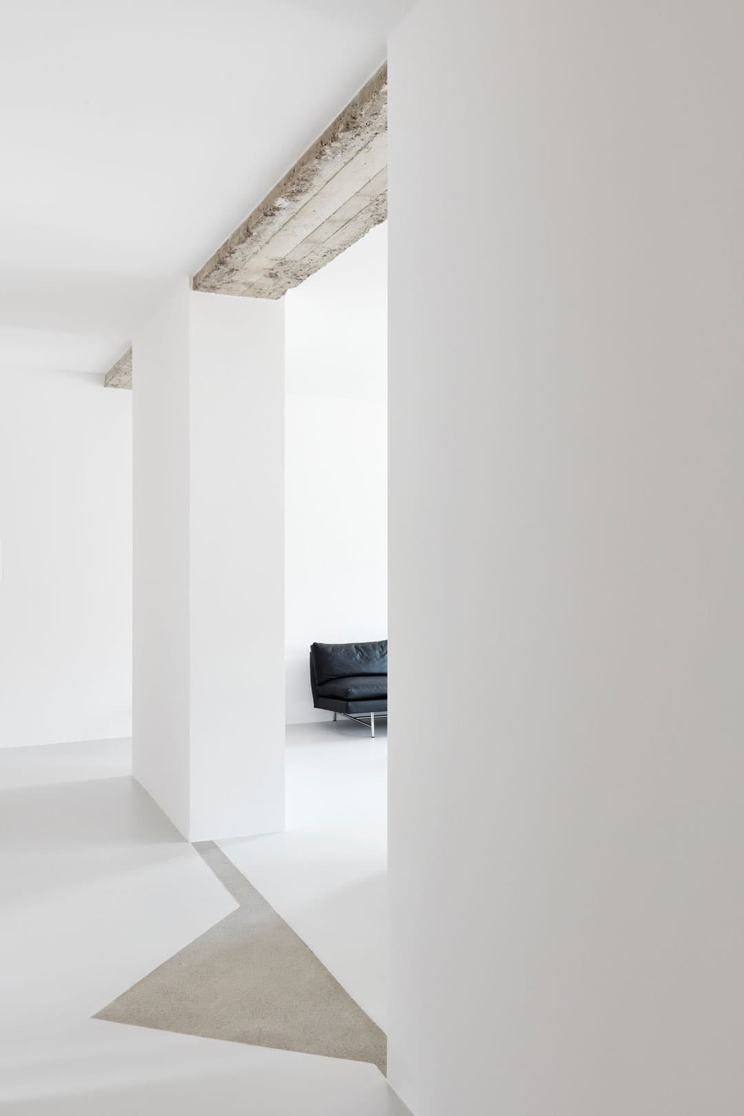 Il pavimento rivestito in Microresina KK 5, con tonalità neutre e texture materiche, unifica gli ambienti creando un’atmosfera equilibrata e sofisticata. Un progetto che punta sulla fluidità degli spazi e sulla leggerezza dei volumi.